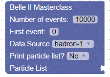 In the Belle II masterclass you can perform actual physics analyses with a simple interface composed of the following blocks: